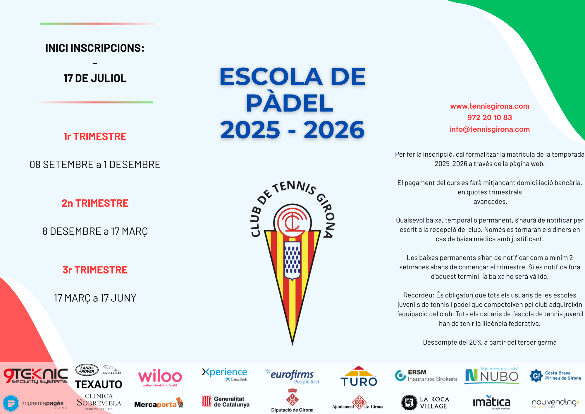 INICI PRIMER TRIMESTRE: 8 SETEMBRE