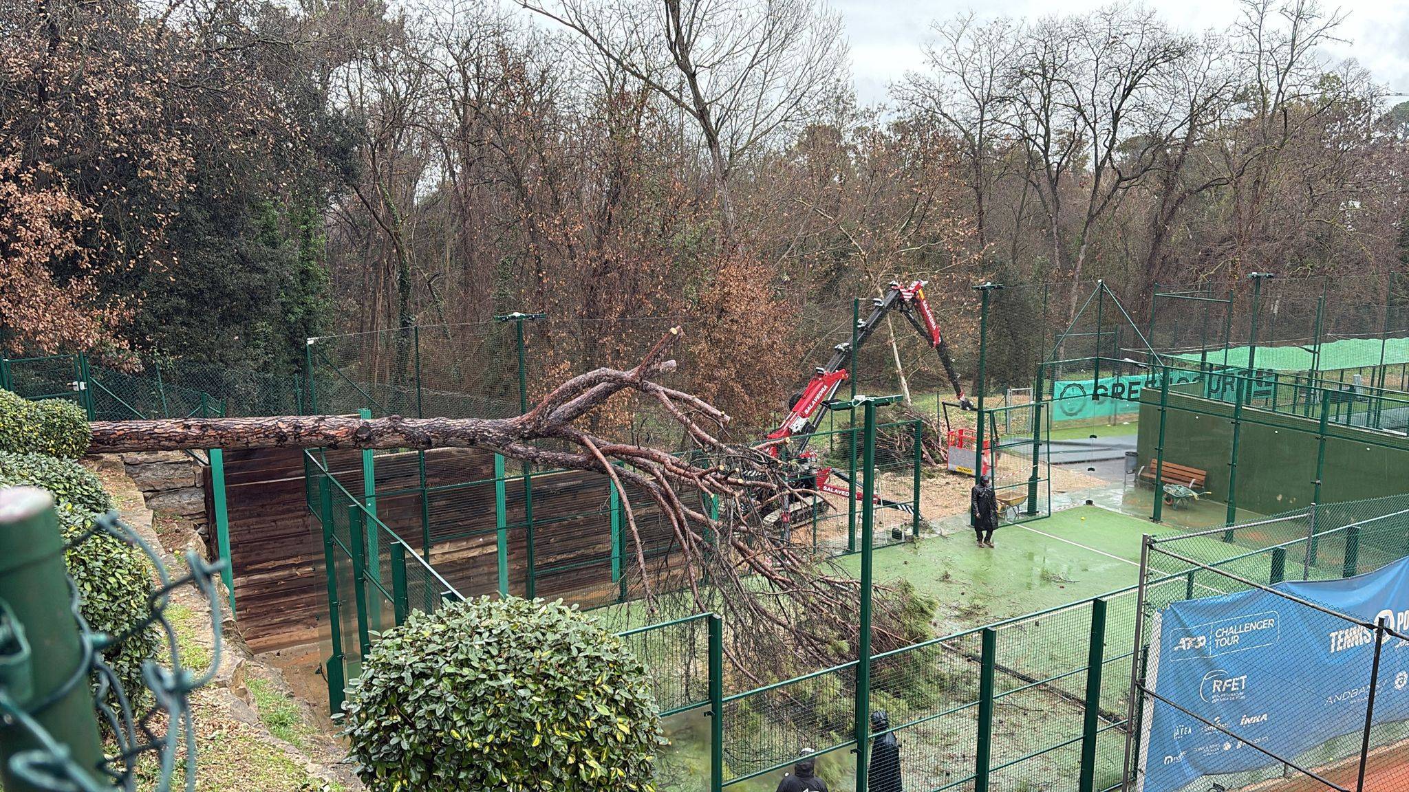 🌲 Arran del temporal, un pi situat sobre la pista 6 de pàdel es va desplaçar. Per seguretat, es va acordonar la zona i dissabte es va procedir a la seva tala.